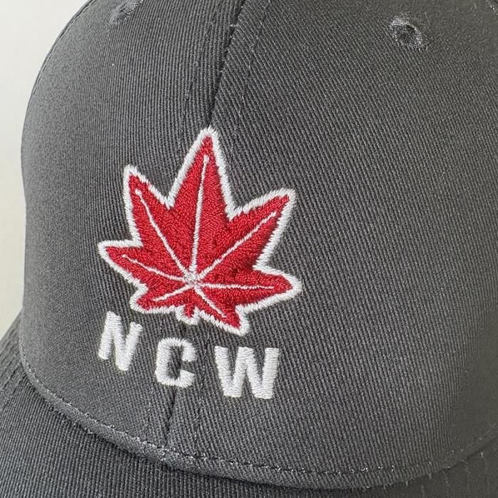 ベーシックなハリのあるツイル素材の「newhattan社」製キャップに、NCW復刻ユニフォームで使用された「紅葉とNCW」のロゴを刺繍しました。