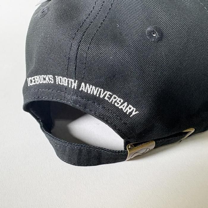 キャップ背面にも「ICEBUCKS 100TH ANNIVERSARY」の刺繍を施してあります。